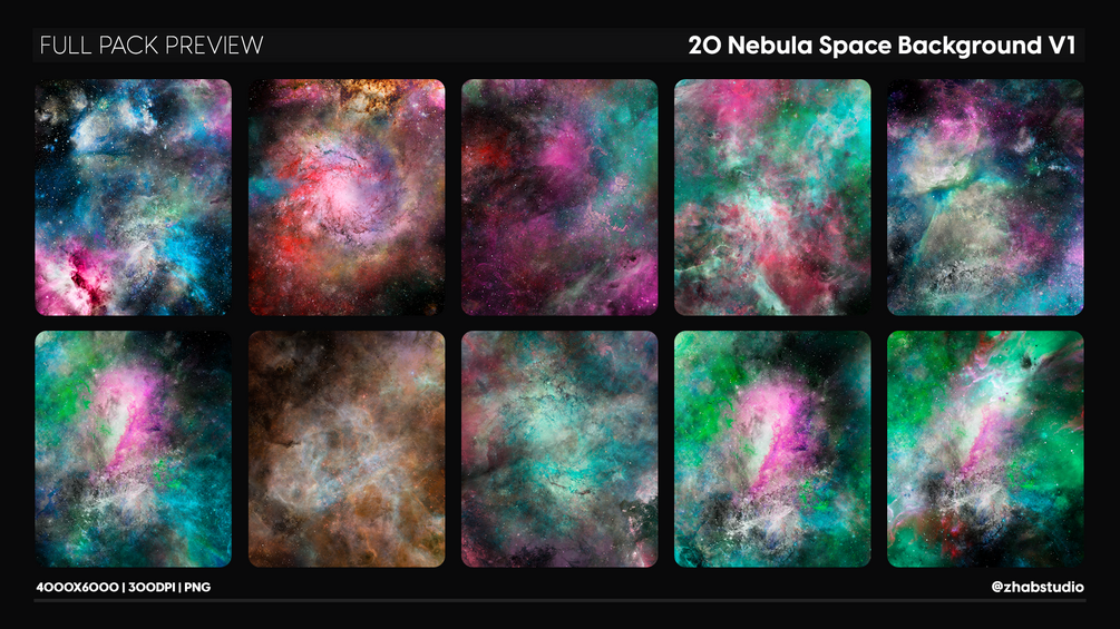 Nebula Space Background is a 4K resolution textures created by @zhabstudio that you can use in a wide variety of projects. You can customize the look and feel by adjusting hue/saturation, curves, invert or color balance to fit your project. This will work best for your print and web graphics projects since the texture are High Resolution Graphics.